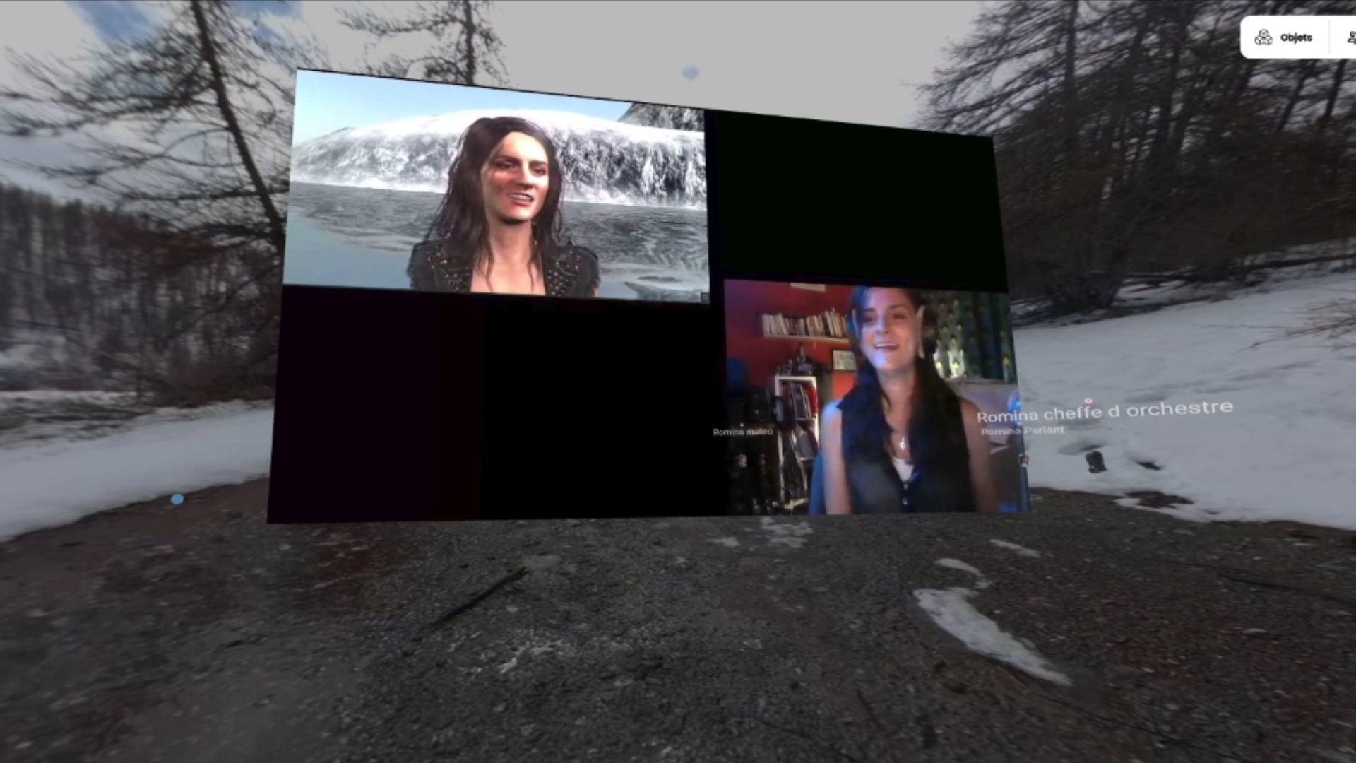 Puis suite au repas de notre chef maison « raviolis niçois à la sauce aux cèpes », Romina S Romay nous a proposé sa performance avec deux concepts artistiques numériques : Météorologie Sonore et Le Tour du Monde en Réalité Mixte.