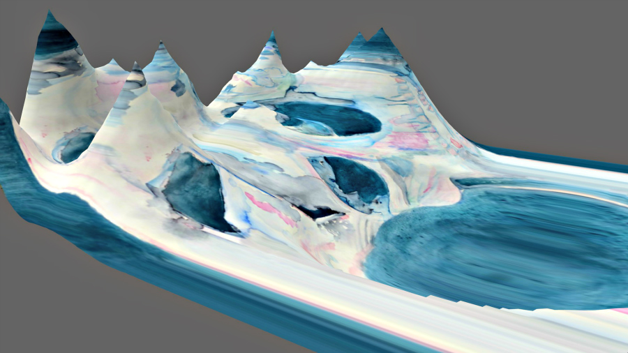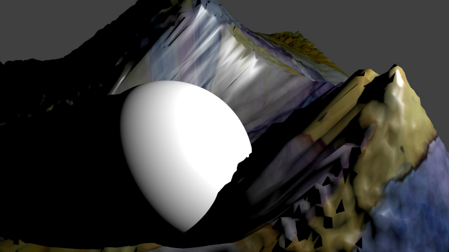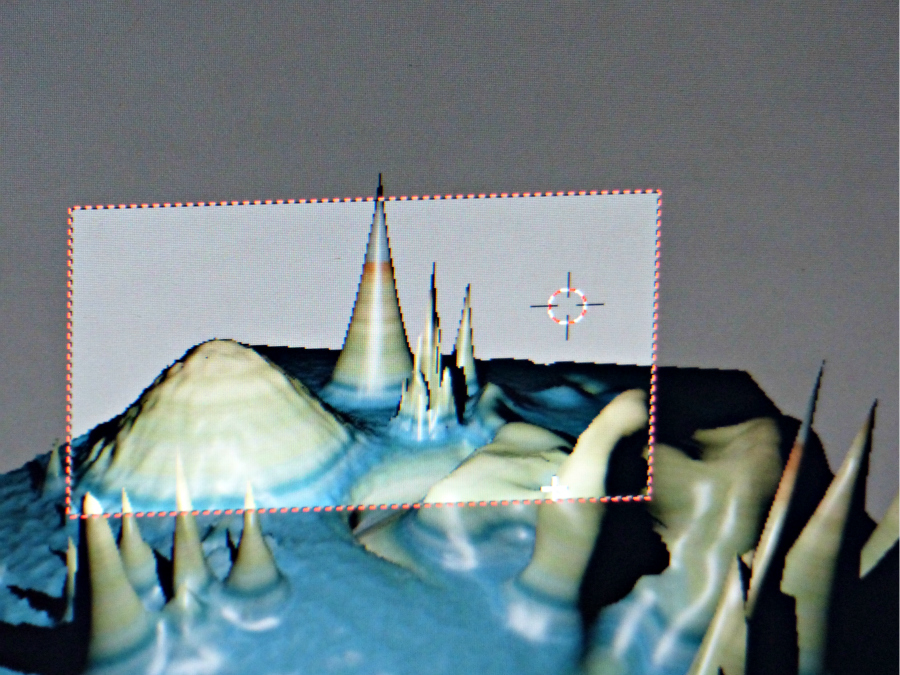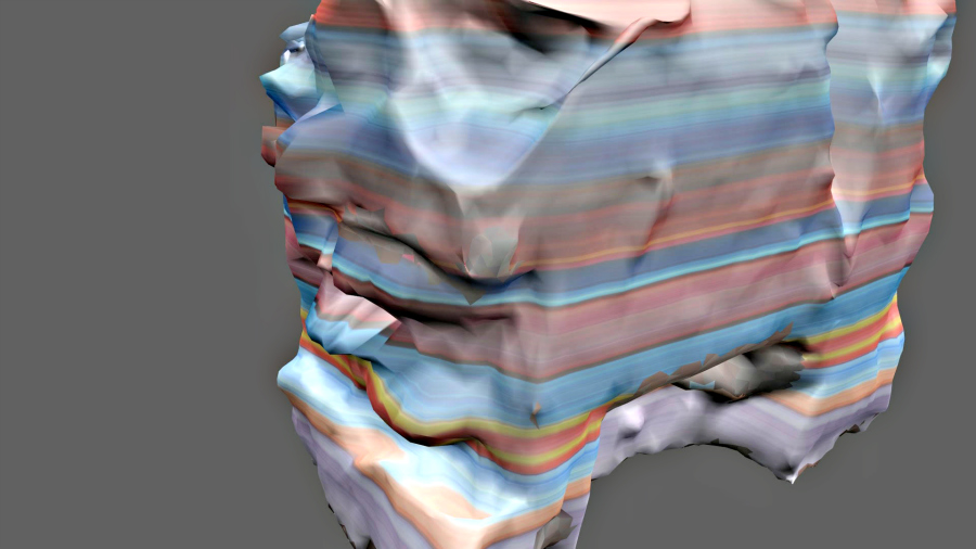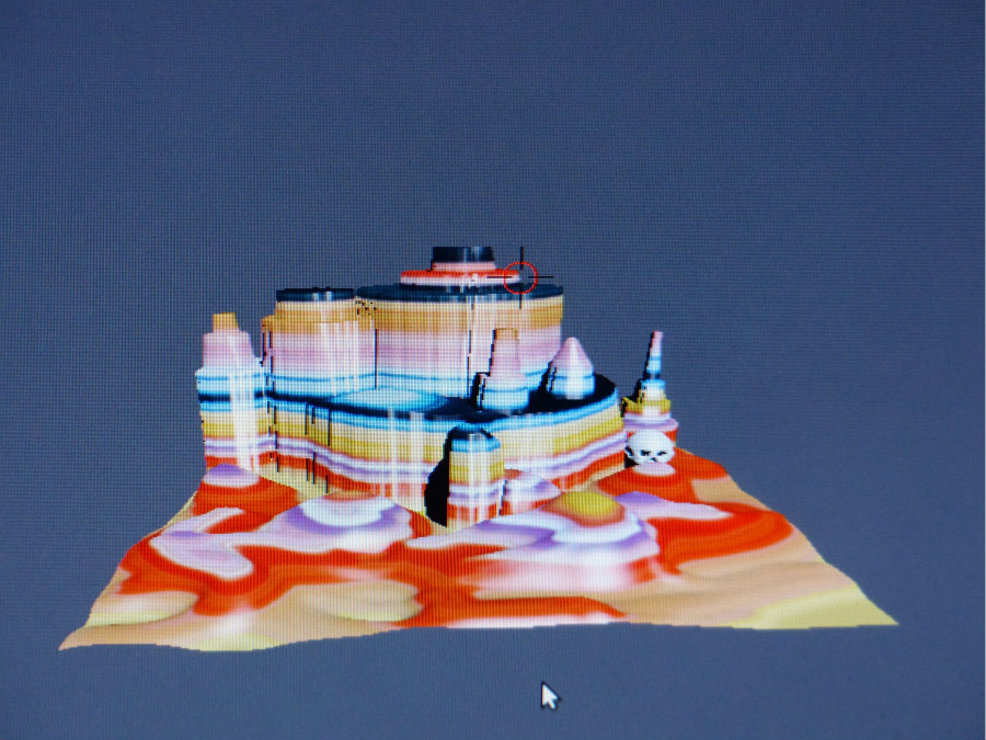 Le logiciel en lien affiche les faces scannées puis reconstitue l’ensemble du paysage minéral. Chaque vue scannée peut être ensuite retouchée et colorisée, la vue d’ensemble se trouvant ainsi automatiquement modifiée.