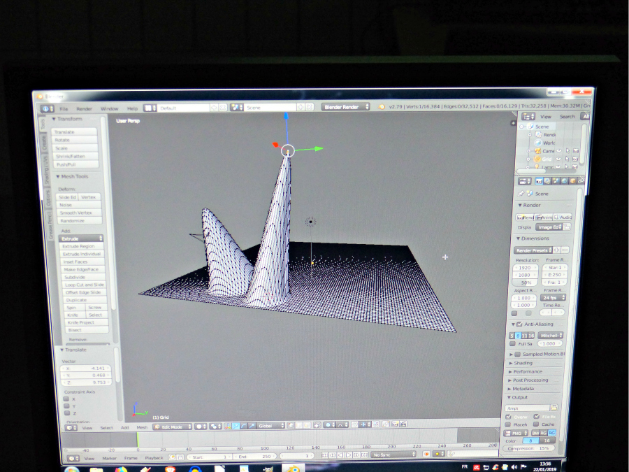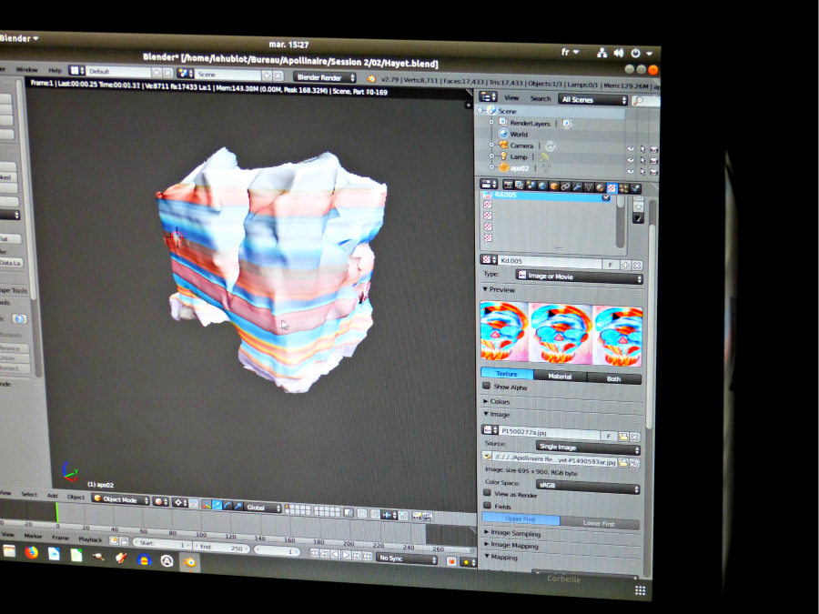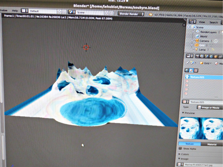 Après un temps de réflexion sur un projet de « Paysage minéral imaginaire » (réponses à un questionnaire et réalisation de croquis), le premier groupe découvre le logiciel Blender et crée en 2 heures son paysage modélisé.