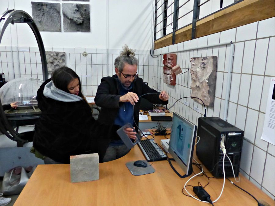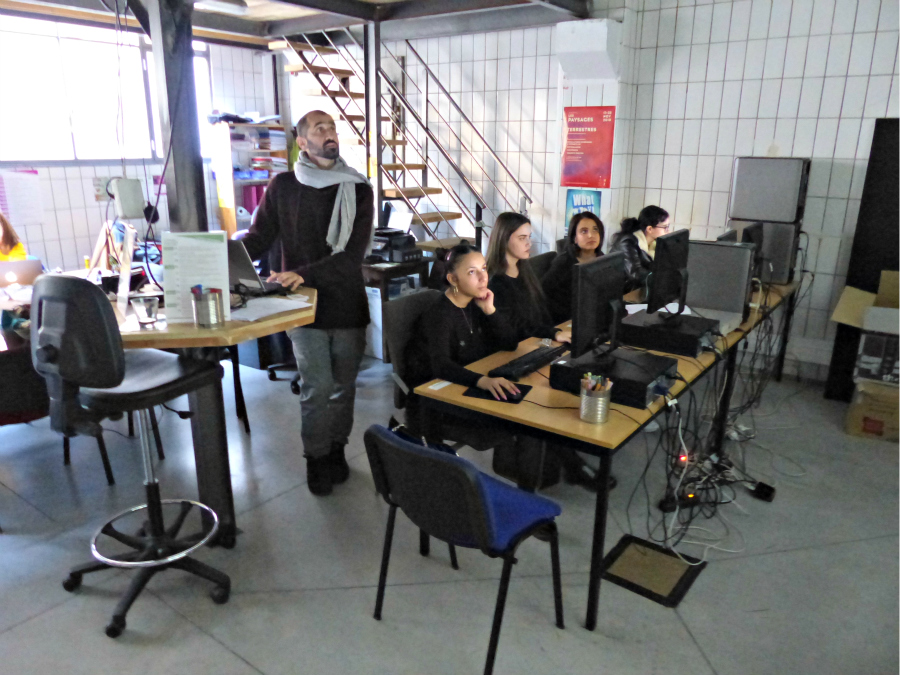 Les élèves sont d’emblée divisés en deux groupes, l’un en atelier informatique sous la direction de Jerill Quere, l’autre en atelier sculpture sous la direction de Frédéric Alemany.