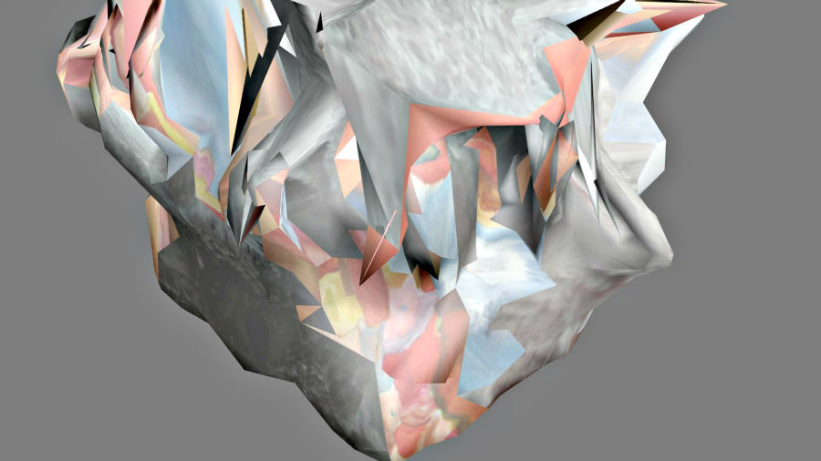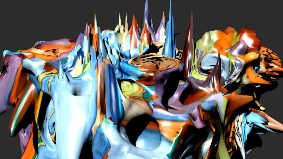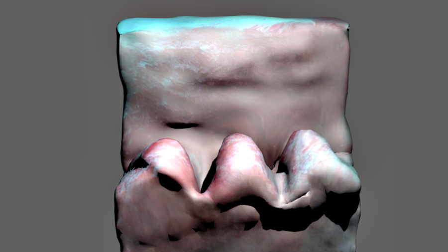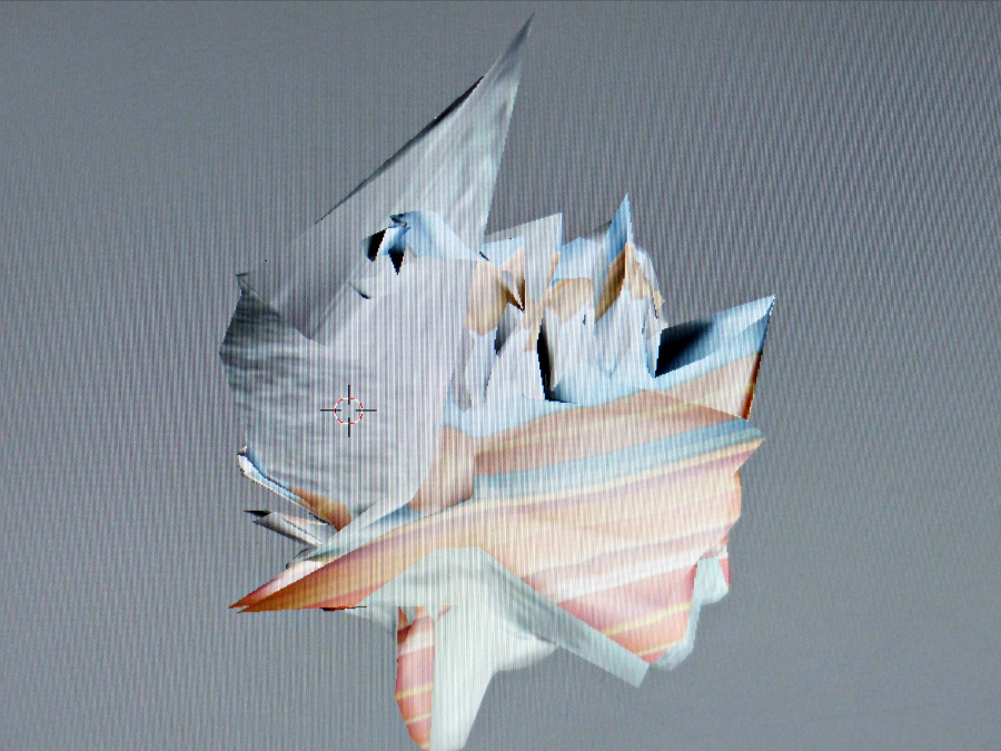 Jerill Quere donne ensuite à chacun des élèves une clé USB avec le scan 3D du volume qu’il a réalisé la semaine passée et lui demande de le modifier à sa guise, en le complexifiant puis en le colorisant (masque appliqué) d’après ses travaux à l’aquarelle réalisés en classe, « Crâne » (voir ICI) ou « Mur/Fenêtre » (voir ICI).