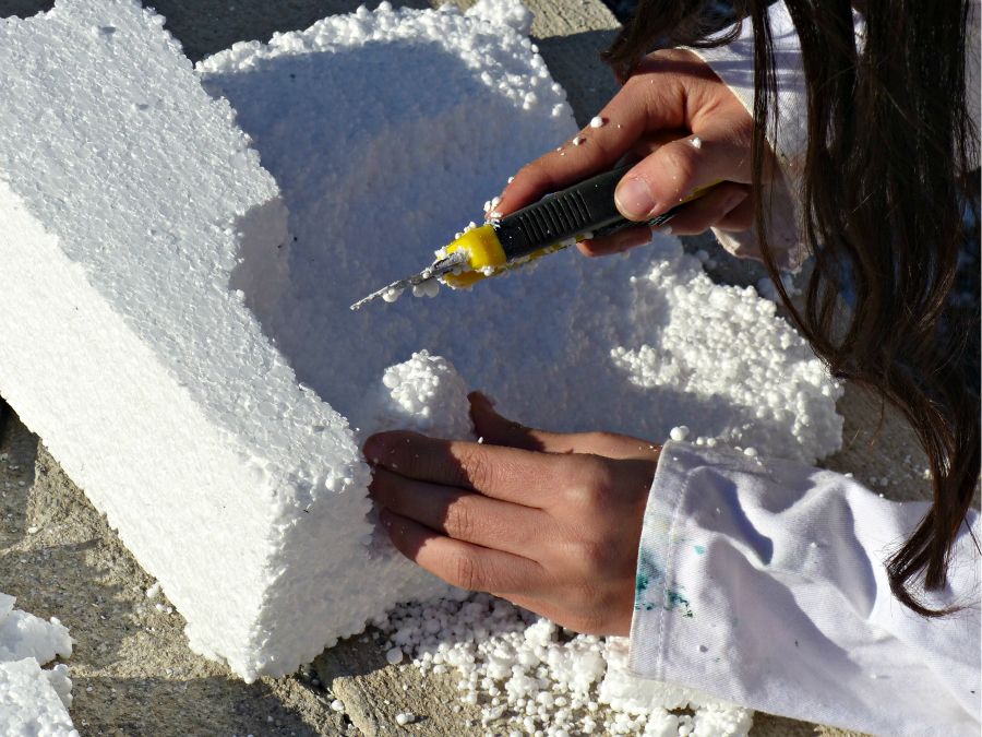 Sculpture sur bloc de polystyrène