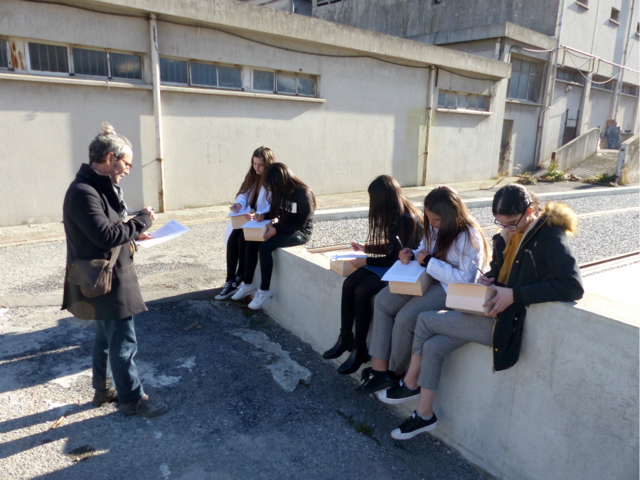 dans la cour du Hublot puis montrant comment reporter le croquis sur les faces du cube de polystyrène.